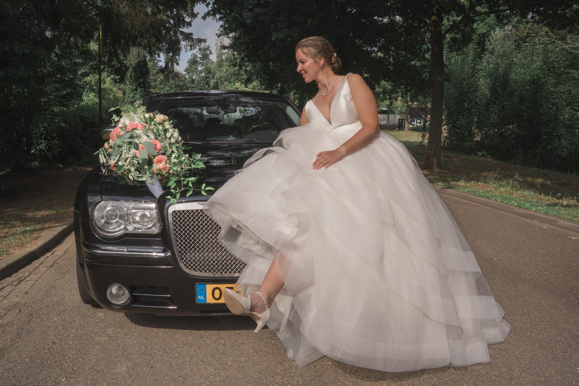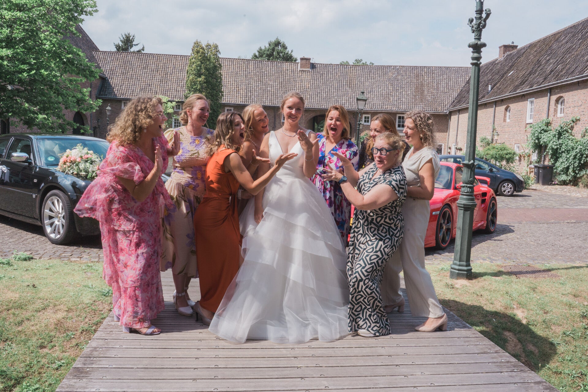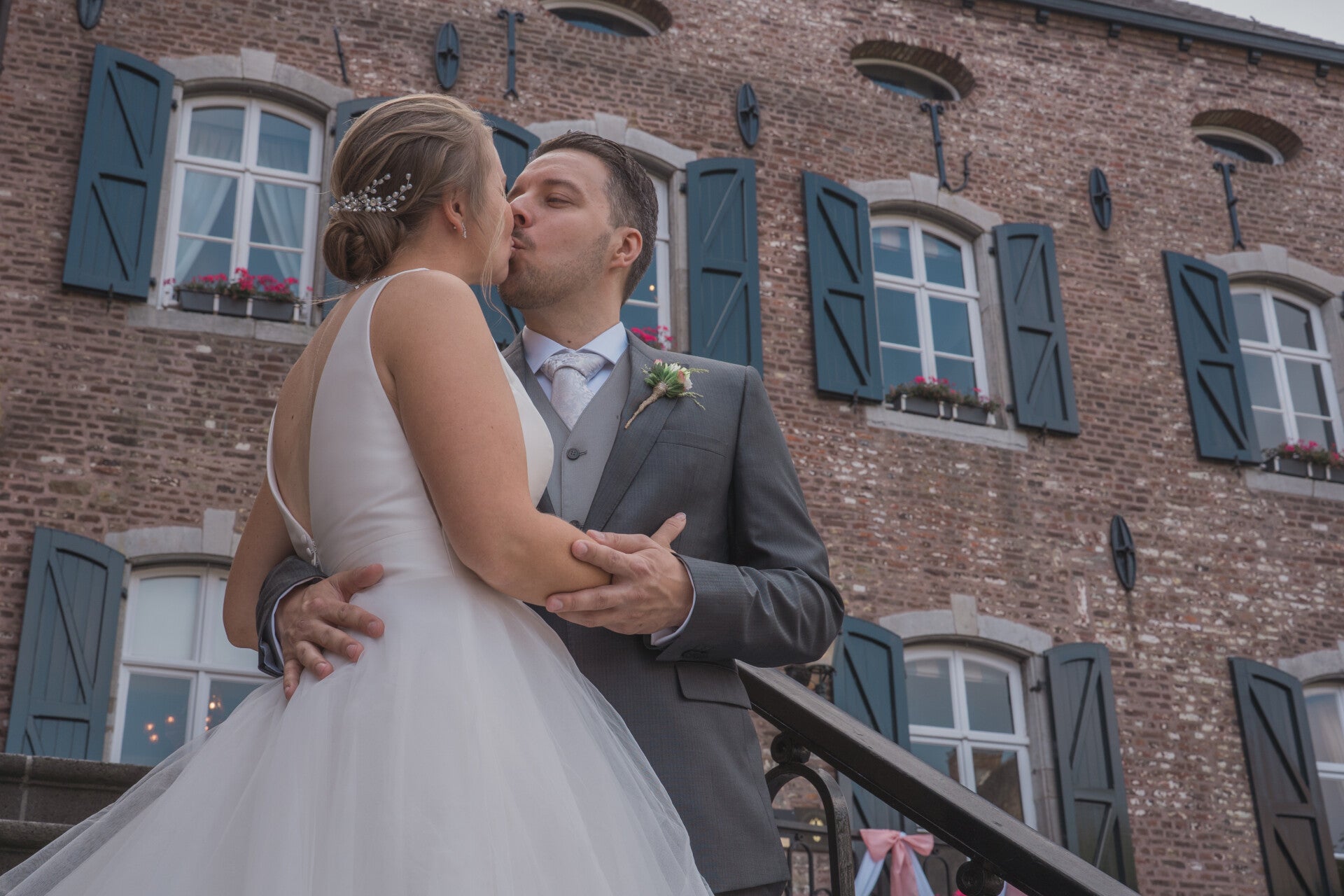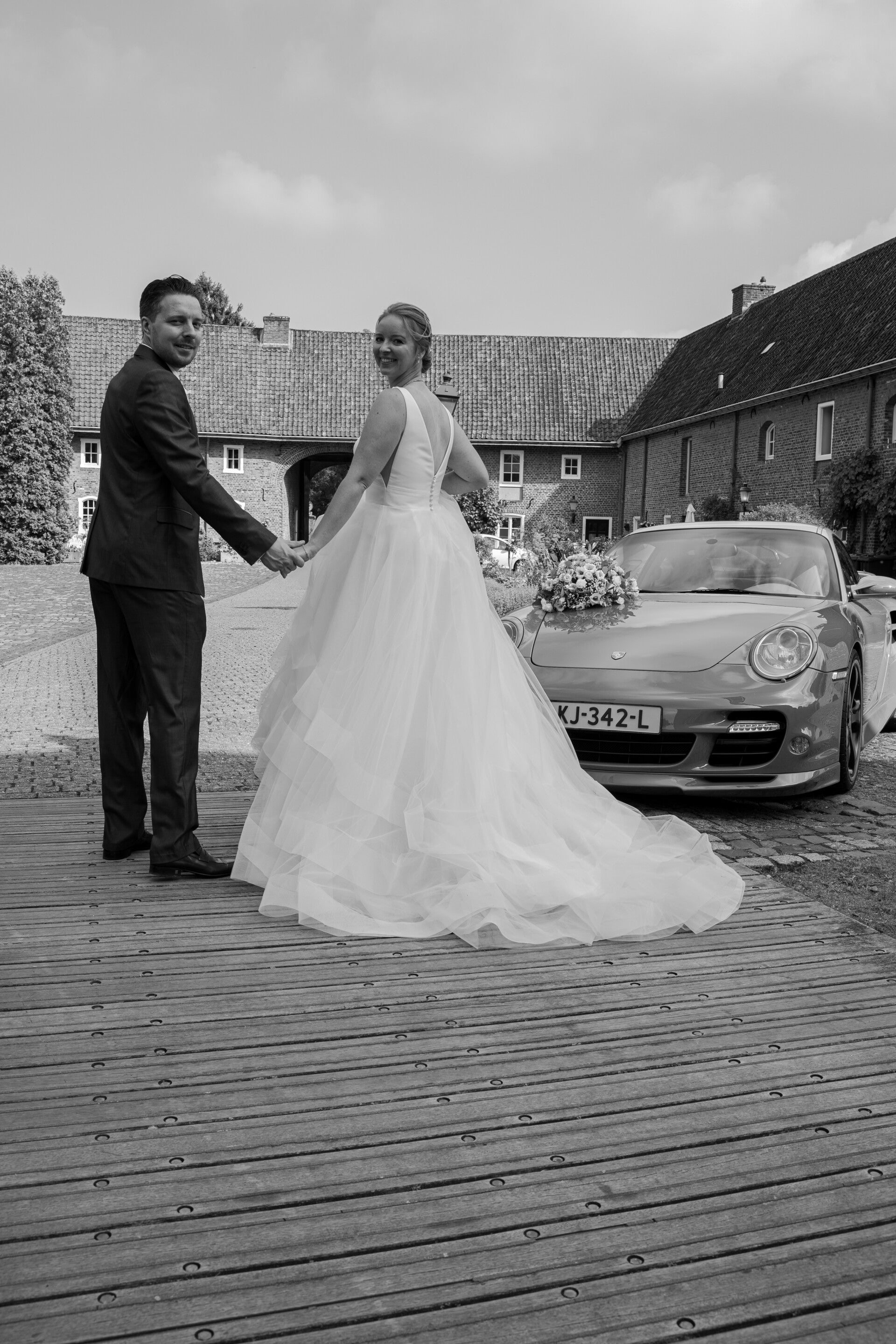 Het bruidspaar arriveerde in stijl, helemaal passend bij hun liefde voor sportieve auto’s. Een stoere entree die direct zorgde voor een persoonlijke en unieke touch. Daarna volgde een intieme ceremonie op de binnenplaats en in de romantische setting van het kasteel, omringd door familie en vrienden. Elk moment – van de eerste blik tot de emoties tijdens de geloften – was gevuld met pure liefde en spontaniteit.