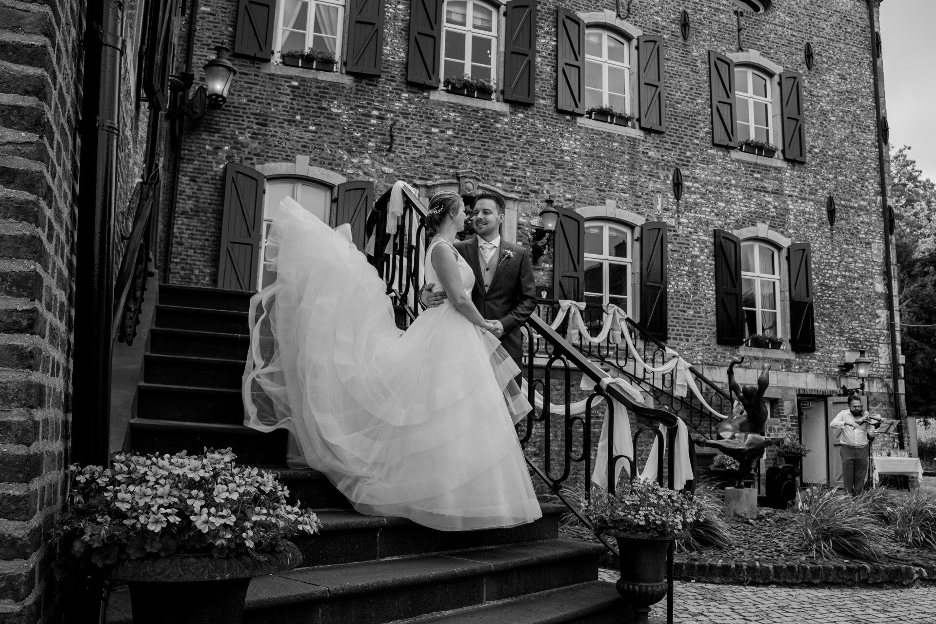 Als trouwfotograaf in Kerkrade en omgeving vind ik het belangrijk dat bruidsparen ongedwongen kunnen genieten, terwijl ik de herinneringen vastleg. De bruiloft van Regina & Jorie was een perfecte weerspiegeling van hun liefde: stijlvol, stoer en vol energie.