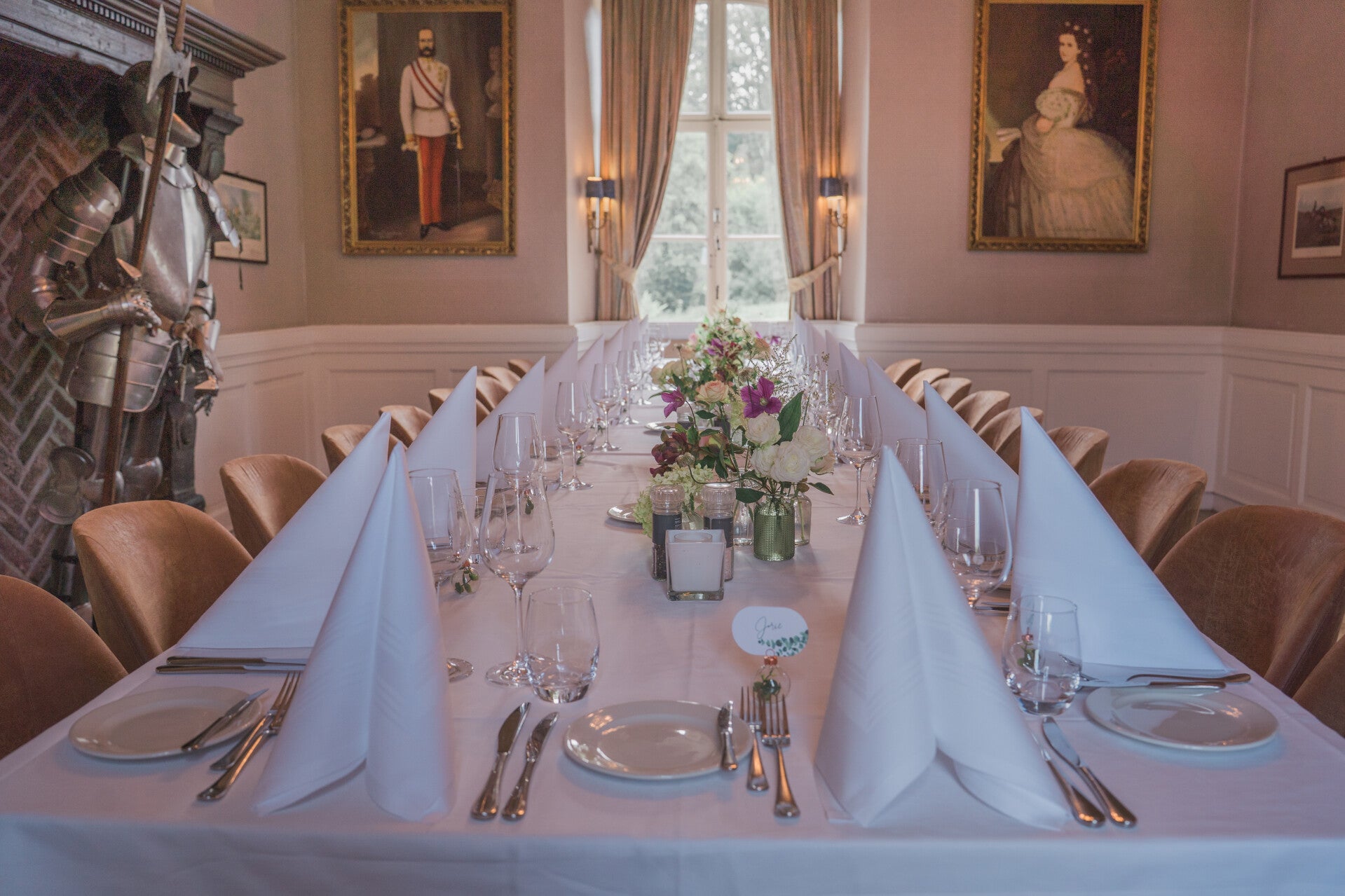 Na de ceremonie genoten Regina & Jorie van een ontspannen fotoshoot rondom en in het kasteel. Het zachte licht, de historische muren en de speelse momenten samen maakten de reportage tijdloos en persoonlijk. In de middag werd er een heerlijke lunch verzorgd in een van de prachtige eetzalen van Fletcher Kasteel Erenstein. Daarna was het tijd voor een borrel waar dans, plezier en geluk centraal stonden.